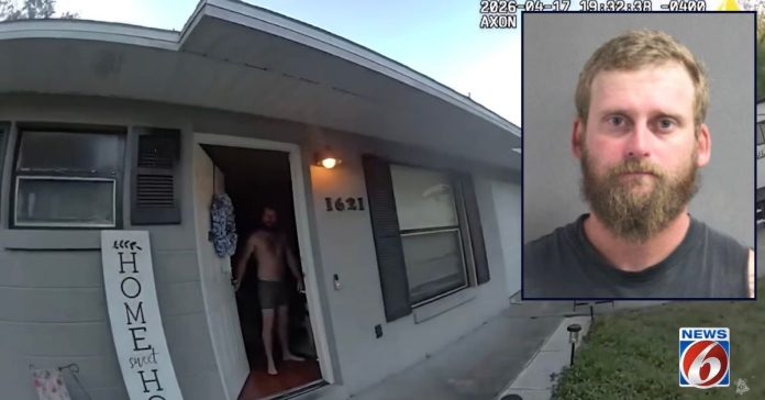 Inset: Anthony L. Hester (Volusia County Sheriff’s Office). Background: Deputies arresting Hester at his Florida home (WKMG).
