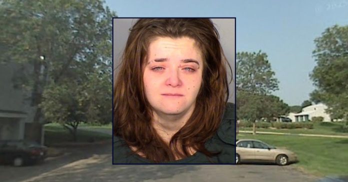 Inset: Amber L. Raymond (Ramsey County Adult Detention Center). Background: The area in Minnesota where Raymond allegedly had her boyfriend beat her daughter (Google Maps).