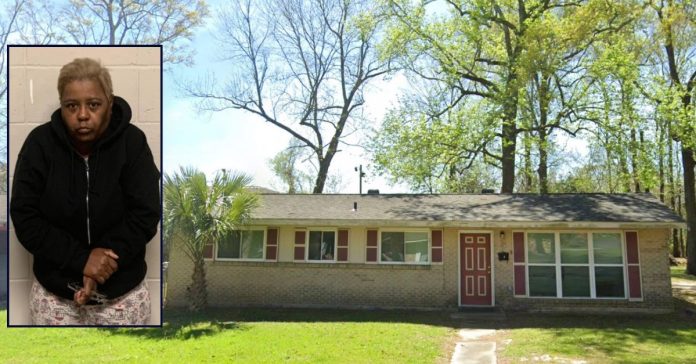 Inset: Roxanne Record (Baton Rouge Police Department). Background: The home in Baton Rouge where Record allegedly killed her 4-year-old granddaughter (Google Maps).