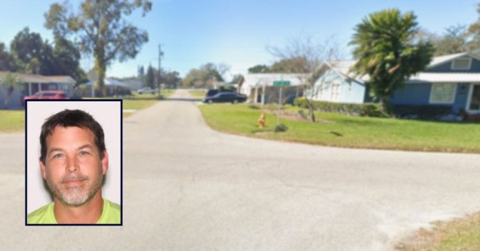 Inset: Jason Kenney (Polk County Sheriff”s Office). Background: Lemon Avenue in Lakeland, Florida, where Kenney allegedly shot his wife and stepdaughter (Google Maps).
