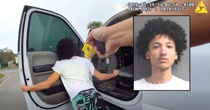 The Daytona Beach Police Department provided body camera footage showing an officer arriving at the scene. The officer can be seen getting out of his truck when the suspect comes running around the back of it. The officer advises him to “get on the f— ground,” but the suspect opens the vehicle’s door, and the officer tases him.