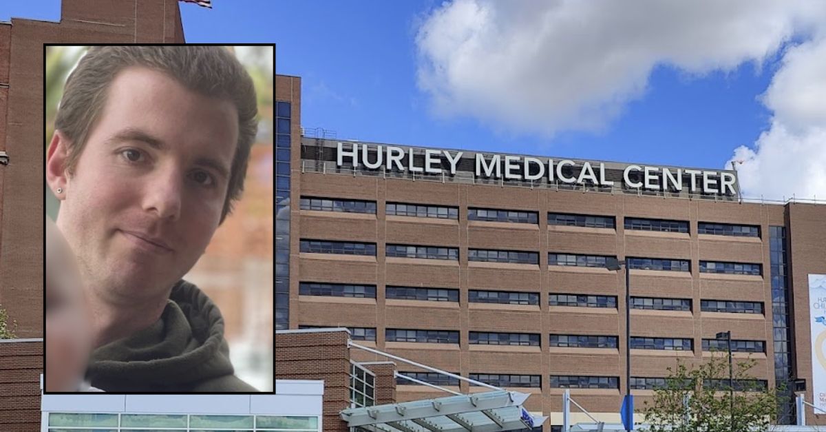 Background: Hurley Medical Center in Flint, Mich. (Google Maps). Inset: Dylan Haddix (Facebook).