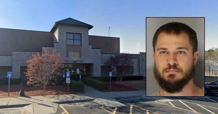 Background: Hall County Jail in Hall County, Georgia (Google Maps). Inset: Julian Chase Jalbert, Sr. (Hall County (Ga.) Sheriff’s Office via WSB).