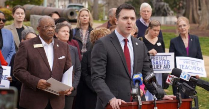 North Carolina Attorney General Jeff Jackson speaks at a press conference (NCDOJ).