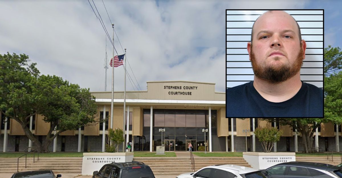 Inset: Cody Wayne Adams (Stephens County Sheriff”s Office). Background: The Stephens County Courthouse in Duncan, Oklahoma (Google Maps).Â