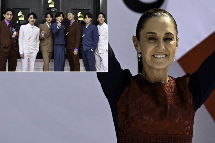 Ahead of BTS’ upcoming tour, Mexico’s Claudia Sheinbaum asked South Korea’s president to “bring the acclaimed K-pop artists more often” to her country.