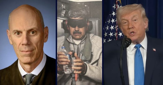 Left: Chief U.S. District Judge James Boasberg (U.S. District Court). Center: Nicolas Maduro pictured in custody on the U.S.S. Iwo Jima (@realDonaldTrump/Truth Social). Right: President Donald Trump holds a press conference on Jan. 3, 2026, on the overnight capture of Maduro and his wife (White House/YouTube).