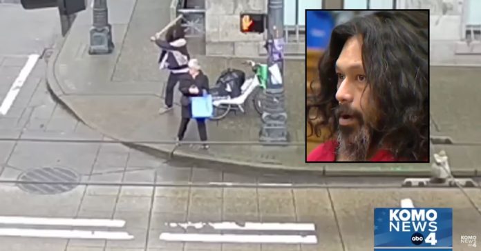 The officer added that Pea frequents Third Avenue, with another cop saying, “He’s notorious for random assaults on Third,” per the video obtained by KOMO. The suspect has reportedly been convicted multiple times in the past for assault, including stabbing someone eight times at a party.