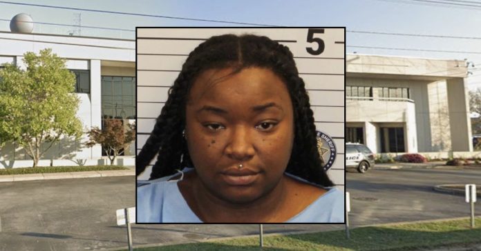 Background: The Police Service Center in Chattanooga, Tenn. (Google Maps). Inset: Taneshia Gearing (Hamilton County Jail).