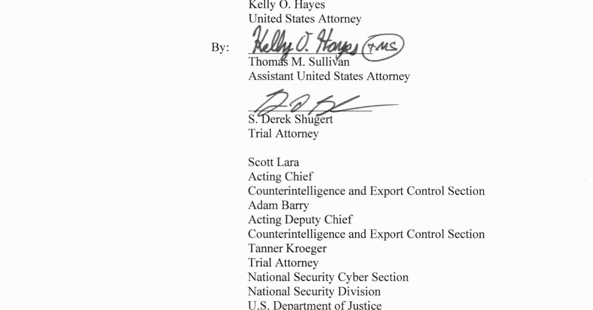 In Bolton’s case, on the other hand, the indictment was brought under U.S. Attorney for the District of Maryland Kelly O. Hayes, who was appointed by a federal court in June. What’s more, Hayes was joined by career prosecutors in signing the indictment, including Assistant U.S. Attorney Thomas M. Sullivan, the chief of the National Security and Cyber Section of the office: